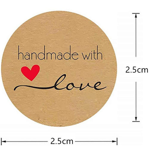 Handmade With Love Gift Tag Label - Round - White or Brown